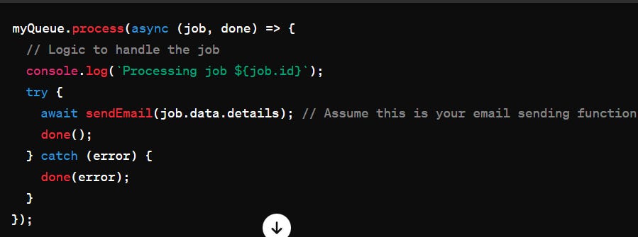 In this snippet, each job assumed to represent an email sending task is processed.
