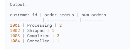 SELECT customer_id, order_status, COUNT(*) AS num_orders