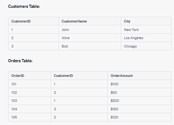 Let’s write a query to retrieve customer names from the "customers" table for customers who have placed orders with an amount greater than 100 in the "orders" table.