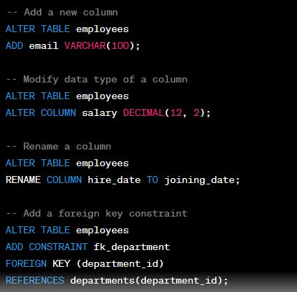 : Creates an index on one or more columns for efficient data retrieval.CREATE INDEX idx_last_name ON employees (last_name);