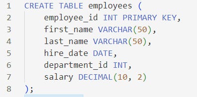 INSERT INTO employees (first_name, last_name, hire_date, department_id, salary)