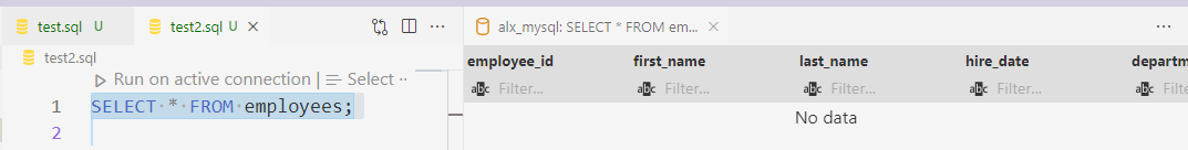- Open your SQL file (`test.sql`) in Visual Studio Code.